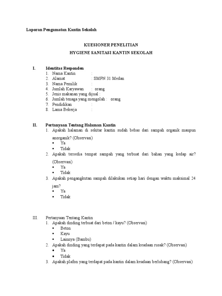 Tugas Bi Laporan Pengamatan Kantin Pdf